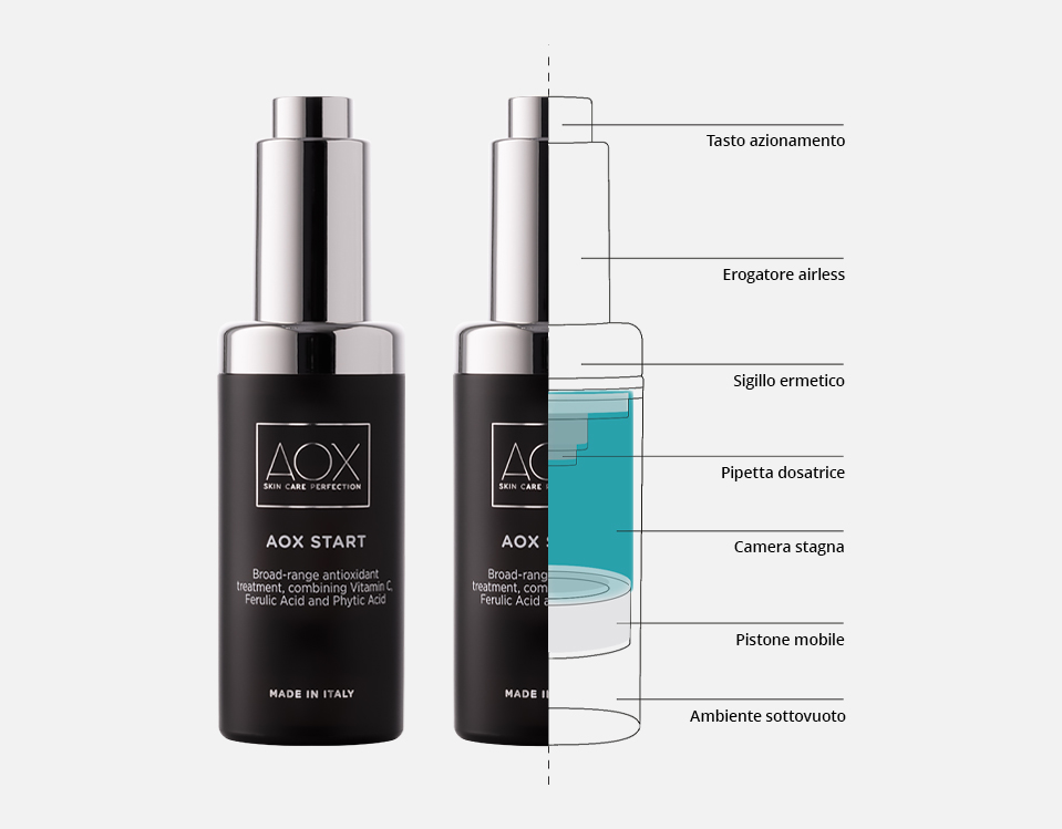 L'esclusivo sistema airless di AOX preserva intatto il potere antiossidante fino al completo utilizzo della confezione.